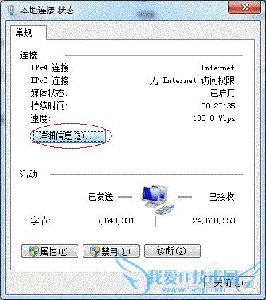 1.3 在弹出的【本地连接 状态】窗口中点击【详细信息】,如下图: