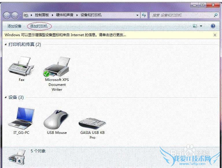 成功添加后,在【控制面板】的【设备和打印机】窗口中,可以看到新添加的打印机,如下图: