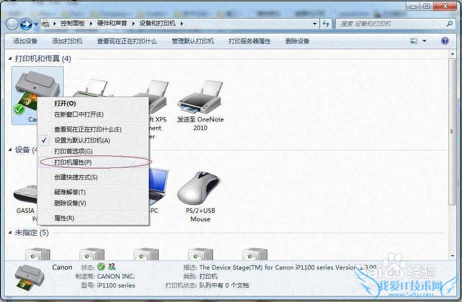电脑互助网说明:有些网友开始菜单中没有【设备和打印机】,大家可以打开控制面板在控制面板中找到【设备和打印机】并打开。 2、在打开的【设备和打印机】窗口中,找到并选中需要共享的打印机右键选择【打印机属性】操作方法如下图所示。