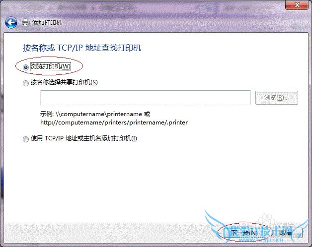 接下来的设置就有多种方法了。 第一种连接局域网共享打印方法1、 选择【浏览打印机】,点击【下一步】。