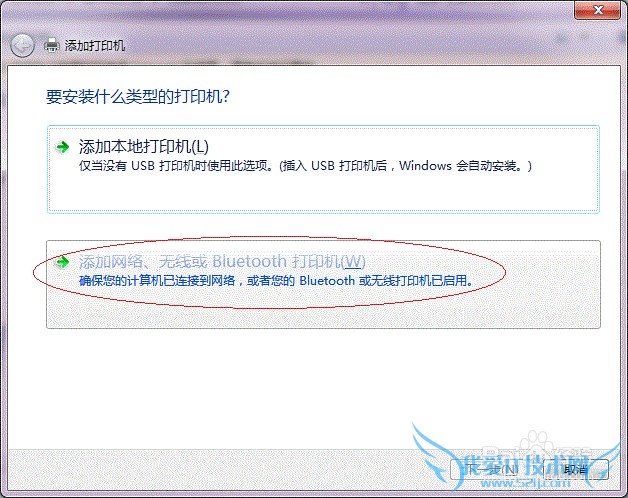 2、接下来,选择【添加网络、无线或Bluetooth打印机】,点击【下一步】。