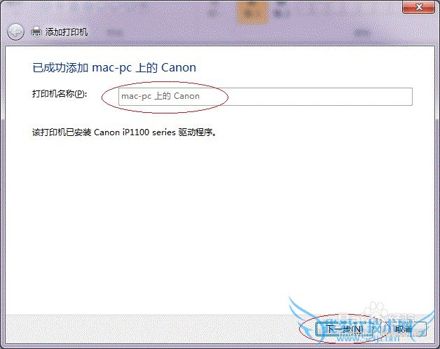 3. 接着系统会给出提示,告诉用户打印机已成功添加,直接点击【下一步】,如下图: