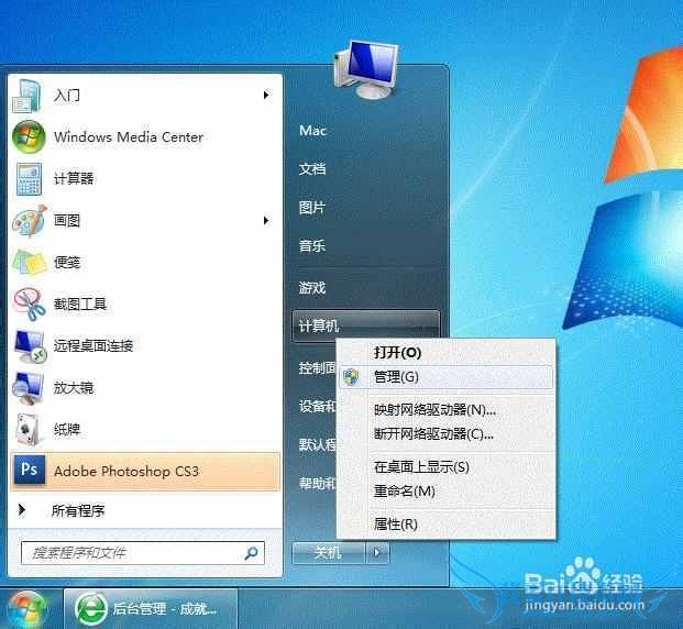 第三步:进行高级共享设置 第四步:设置计算机工作组第五步:其他计算机上添加局域网共享打印机 取消默认禁用的Guest用户 1、点击Windows桌面左下角的【开始】按钮,在开始菜单中找到【计算机】上计算机上右键,选择【管理】。参考图如下图所示。