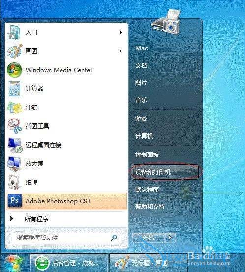 局域网打印机电脑共享设置方法 1、到连接打印机电脑的主机上,打开WIN7桌面左下角的开始菜单,在开始菜单找到【设备和打印机】并单击打开。