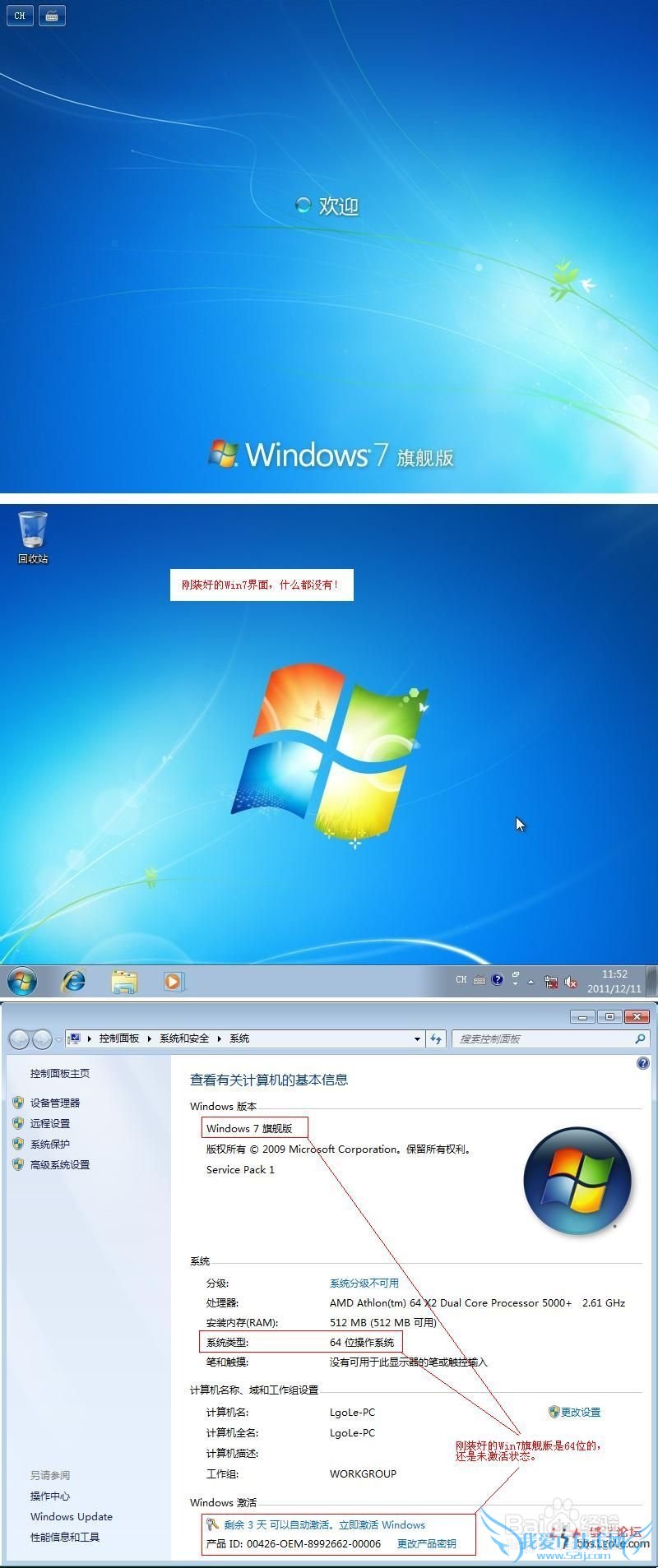 例1:不用光盘,32位Xp下安装64位Win 7系统