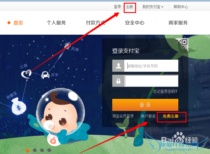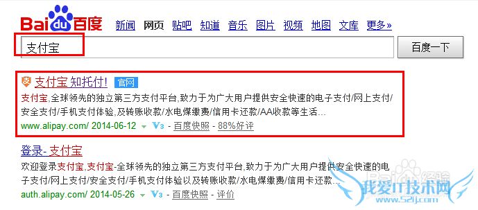 在浏览器中输入支付宝,然后进入其官方网站;如图: