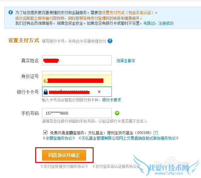 输入银行卡号,然后点击“同意协议并确定”;如图: