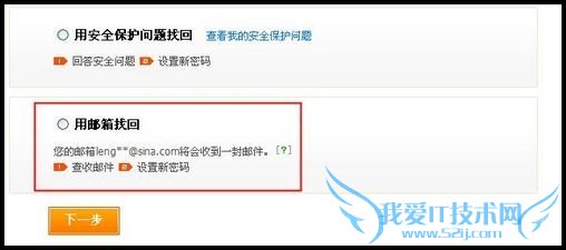 第三步:请选择用“用邮箱找回” 点击“下一步”。