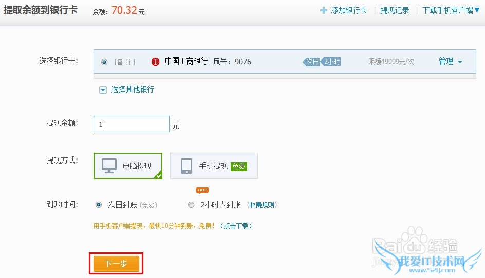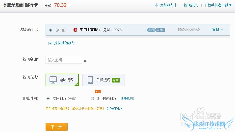 3、选择提现方式:【电脑提现】和【手机提现】