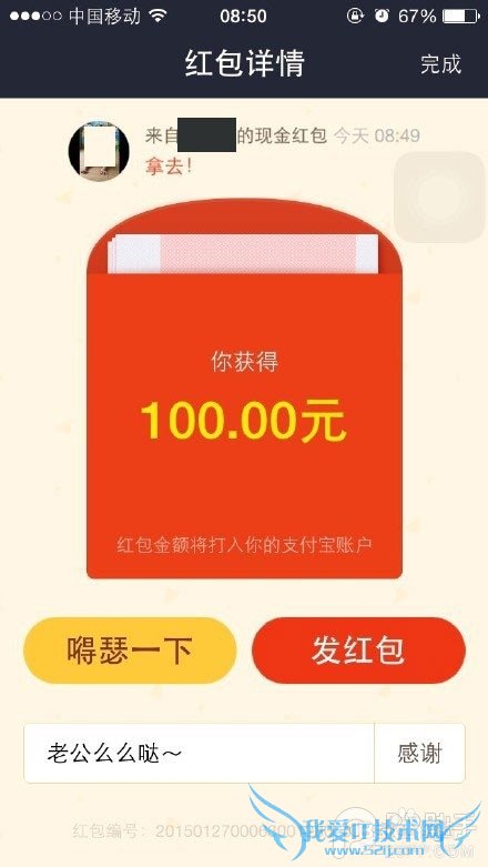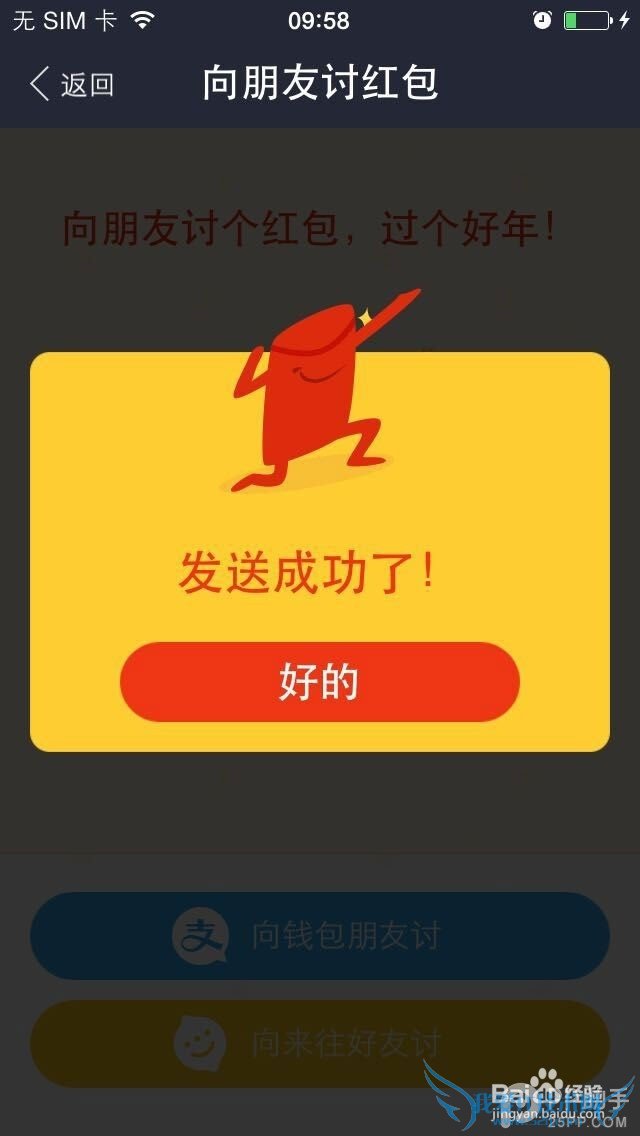 5、成功向土豪朋友们发送了讨红包>>讨红包成功!
