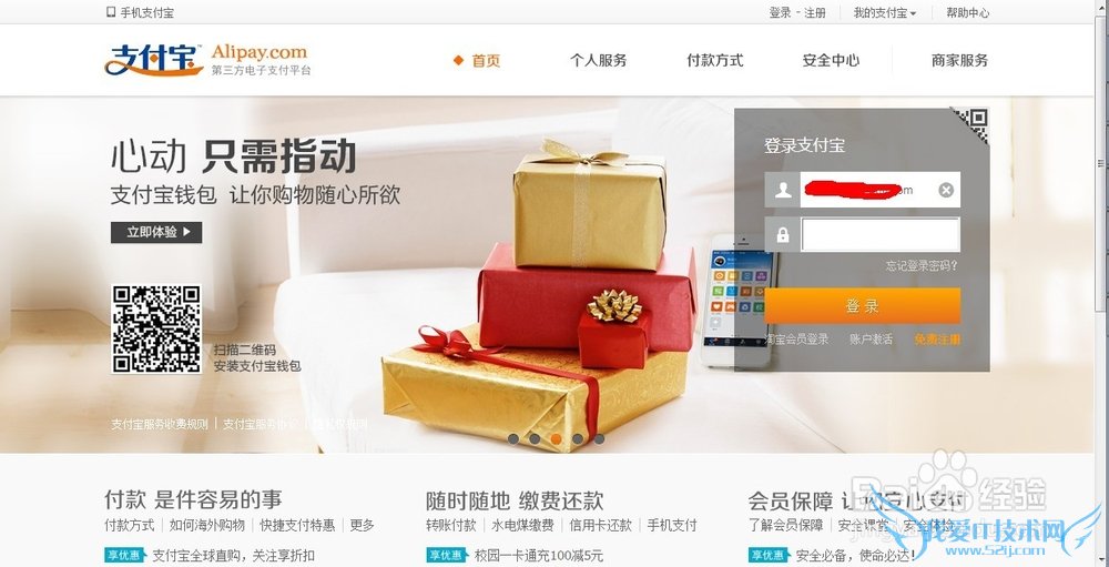 先登陆支付宝官网,输入自己的账号和密码,如果没有账号先申请吧,也可以用手机或邮箱申请,在那之前申请都要用手机验证码,是保护账号的一种重要的手段。