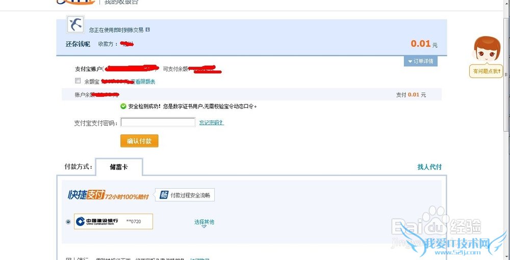 最后一步:输入自己的支付宝密码,如果支付宝没钱也可以用快捷支付或网上银行。