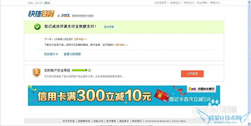 最后就是提示你成功开通快捷支付了!是不是很简单啊!接下来就可以享受快捷支付带来的方便吧!