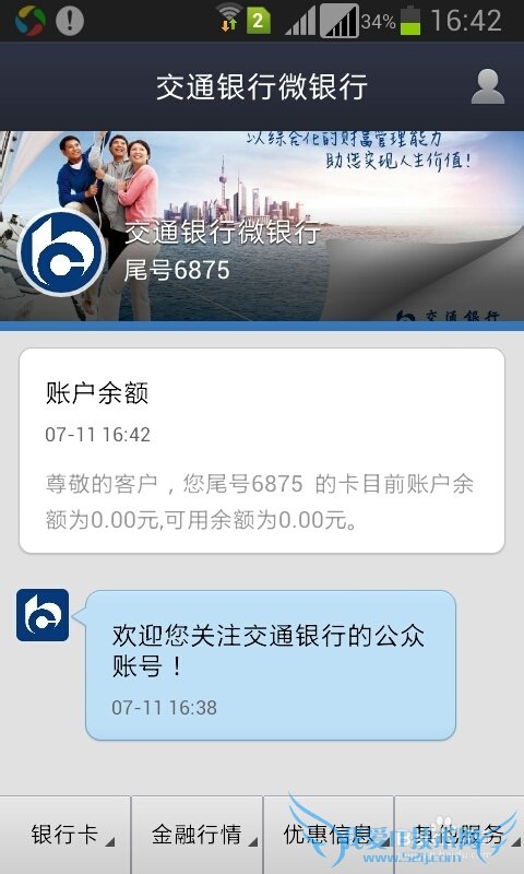 成功绑定后,我们以后就可以通过底部菜单:银行卡->账户查询,随时查询余额了。