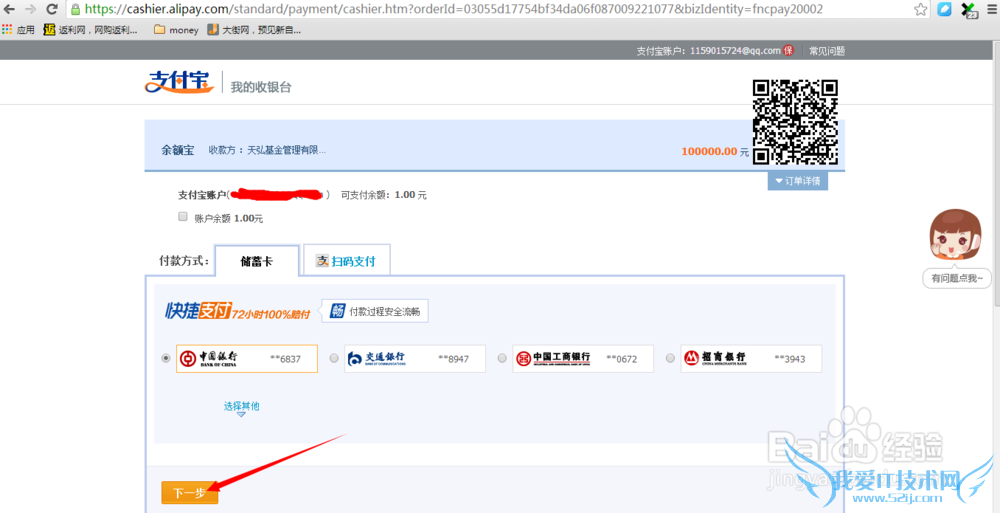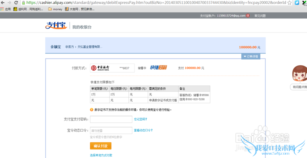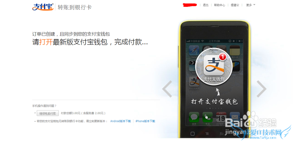 此时按照提示打开支付宝钱包,按照提示付款即可。