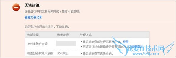 信息提交后,系统会自动检测账户是否符合注销条件:1)不符合注销条件,页面反馈报错提示(以账户有余额报错为例)