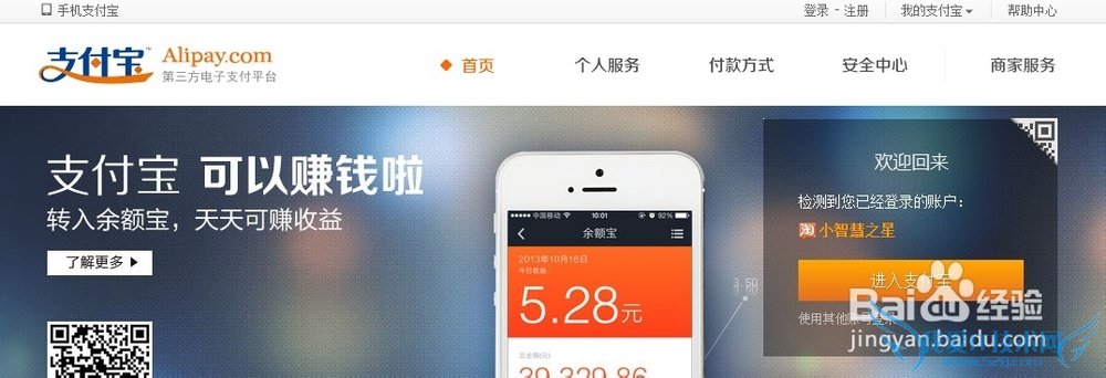 第四步:点击“进入我的支付宝”