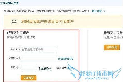 进入支付宝绑定页面,在此页面您可以绑定支付宝账户。(如果您还没有支付宝账户请先申请一个支付宝账户)