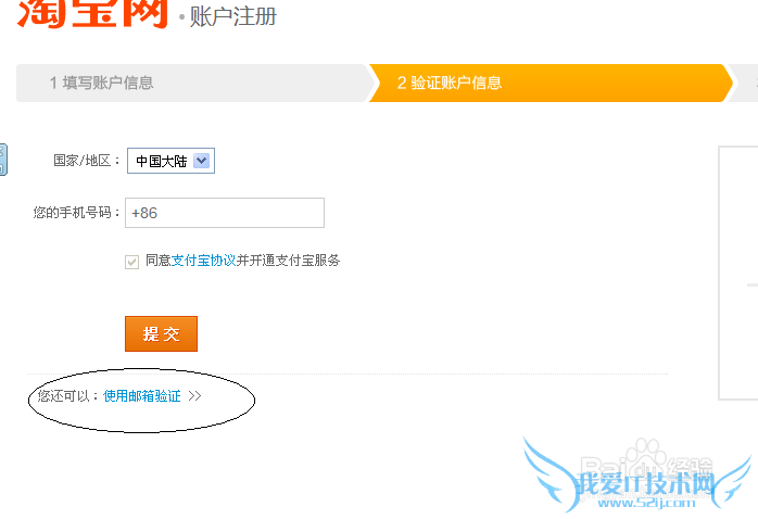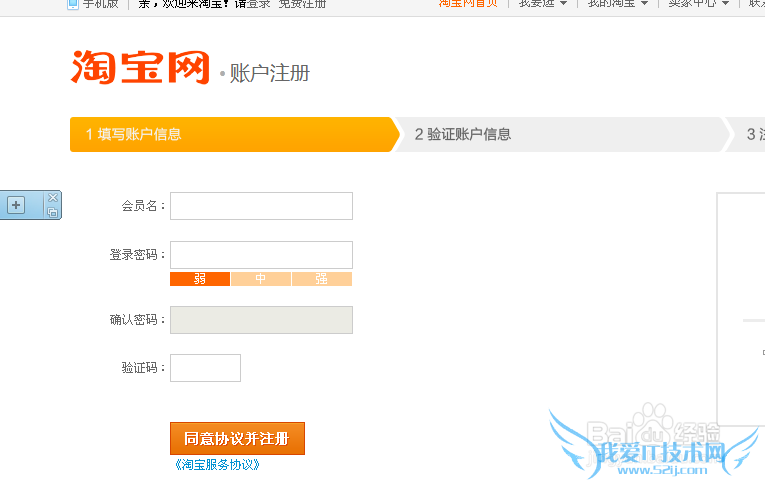 有人说我已经注册过淘宝号了,不能重复注册。我这里可以很负责人的告诉你注册多少都可以的。填好账号密码来到验证账号信息的页面,有一个不认真看很难注意的细节。