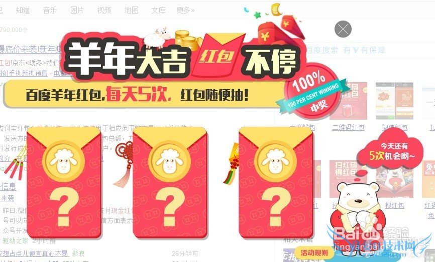 最后,除了阿里的支付宝红包和腾讯的微信红包、QQ红包斗的欢之外,百度也没闲着,也推出了自家的红包呢。在百度搜索框输入“抢红包”有彩蛋!