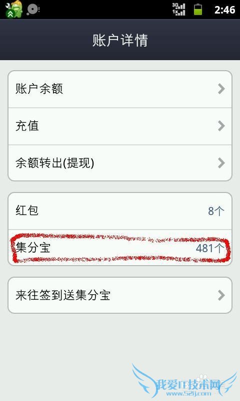 点击: 集分宝所在的第5行,可以看到获得集分宝的详细记录