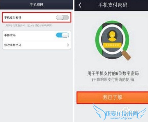 2、在密码管理页,向右滑动开启【手机支付密码】,查看手机支付密码介绍页,点击【我已了解】;