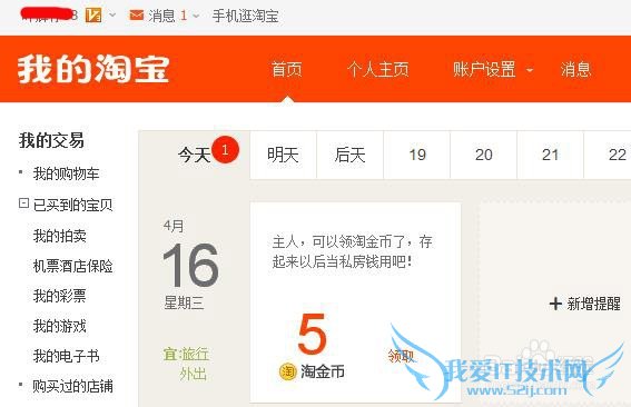 登陆淘宝账号,进入“我的淘宝”页面。如图示: