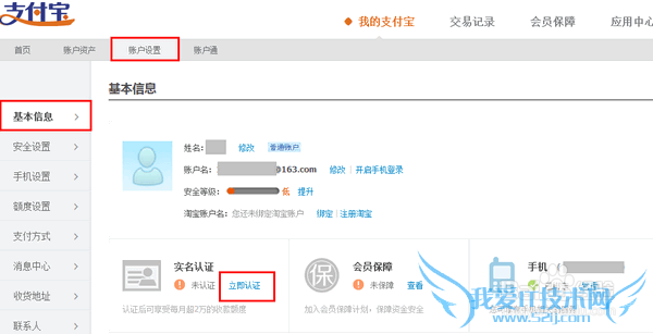 1、打开支付宝,登录支付宝账户,点击【账户设置】——【基本信息】——【实名认证】——【立即认证】,选择地区【大陆认证】,点击【立即认证】;