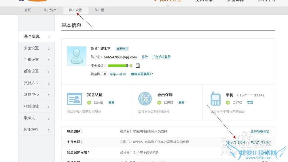 当然验证成功后 登录刚申请的淘宝账号,进入支付宝页面,修改刚申请的还没通过实名认证支付宝账号,修改下支付宝支付密码,等下通过大号关联小号的时候需要用到!