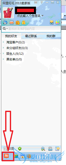 3、登陆成功后,我们可以看到在登陆界面即主界面的左下方有一个淘字样的图标。