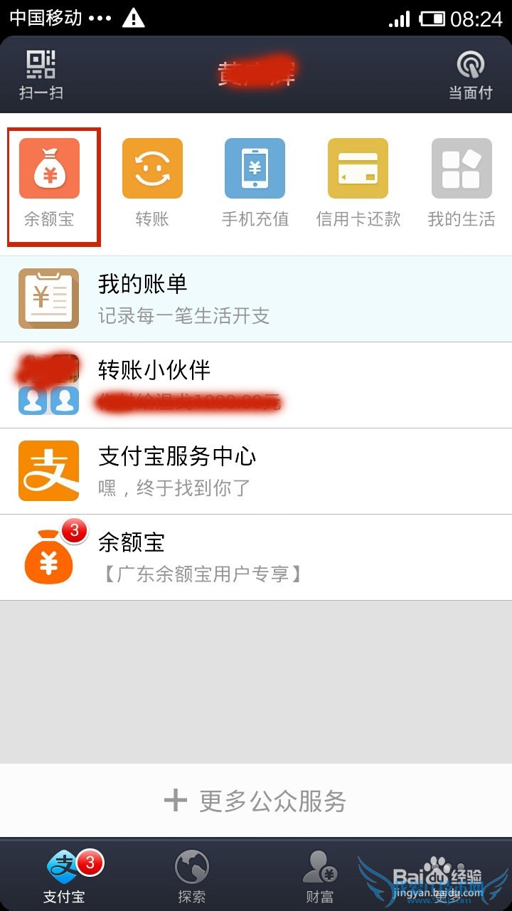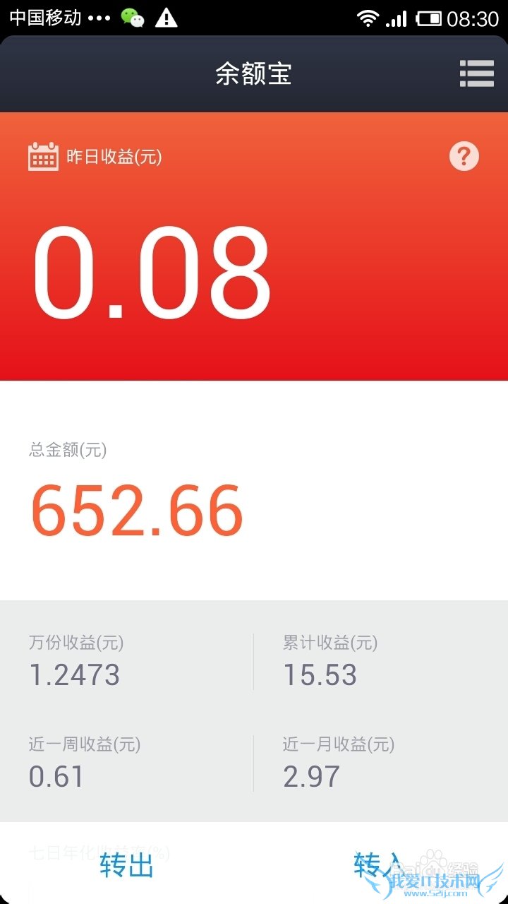 支付宝钱包也可以转入金额、和转出金额。如图示: