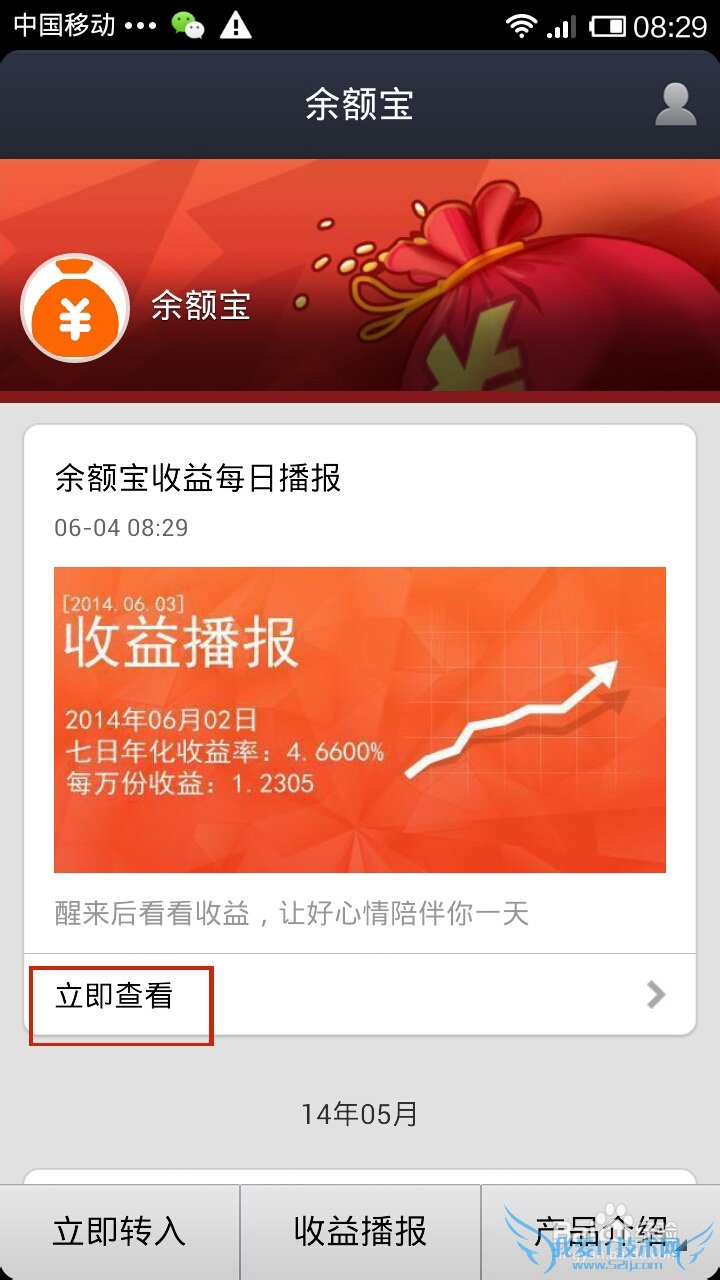 还可以查看余额宝的每日收益日报,点击立即查看。如图示: