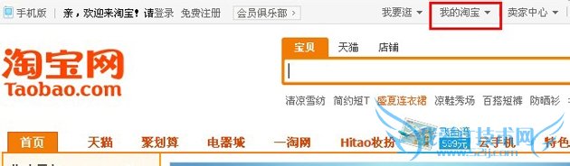 打开淘宝首页,点击顶部右侧的"我的淘宝";