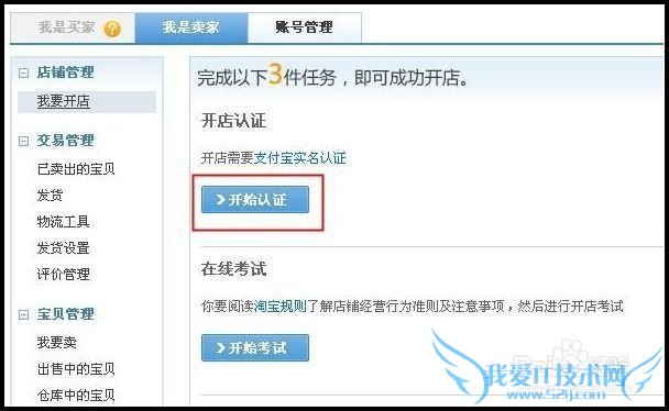 第一步:进入“卖家中心”,点击“我要开店”或“免费开店”,在“开店认证”处点击“开始认证。
