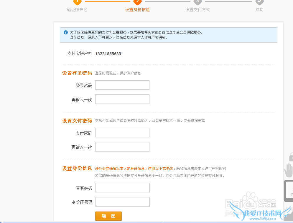 出现下图,再填写自己的身份信息,要真实,填完点击下面确定。