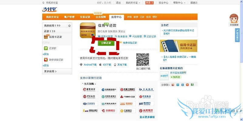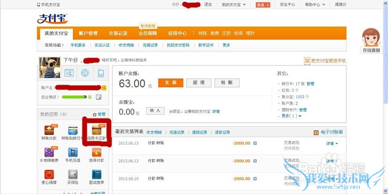 ½øÈëµ½×Ô¼ºµÄÖ§¸¶±¦ÕÊ»§½çÃæµÄʱºò£¬ÔÚ½çÃæµÄ×óϱߡ°ÎÒµÄÓ¦Óá±ÀïÃæÓиöÐÅÓÿ¨»¹¿î£¬µã»÷һϽøÈ뻹¿î½çÃæ¡£