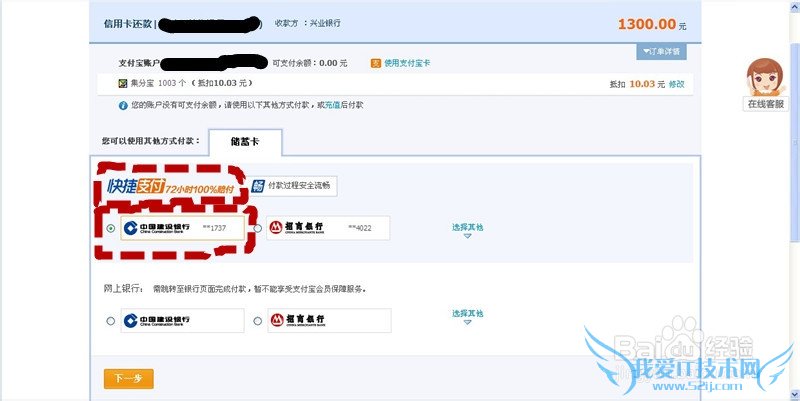 ÏÂÒ»²½µÄ»°¾ÍÊÇÑ¡ÔñÄãÒªÓÃÀ´»¹¿îµÄÒøÐп¨ÁË£¨ÏÖÔÚÖ§¸¶±¦ºÍ²Æ¸»Í¨¶¼²»Ö§³ÖÐÅÓÿ¨»¹ÐÅÓÿ¨µÄ£¬ËùÒÔ¾ÍÖ»ÄÜÊÇÒøÐп¨£©£¬ÎÒ×Ô¼ºµÄ»°ÊÇÉêÇë¿ì½ÝÖ§¸¶£¬¿ì½ÝÖ§¸¶±È½Ï·½±ã¿ì½Ý£¬Ö±½ÓÊäÈëÖ§¸¶±¦Ö§¸¶ÃÜÂë¾Í¿ÉÒÔÍê³ÉÖ§¸¶ÁË¡£