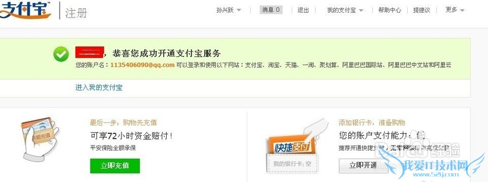 注册成功,成功后,就可使用支付宝的一些功能了。如下图: