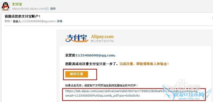 登录邮箱,点击邮件中的激活链接,激活您注册的支付宝账户。如下图: