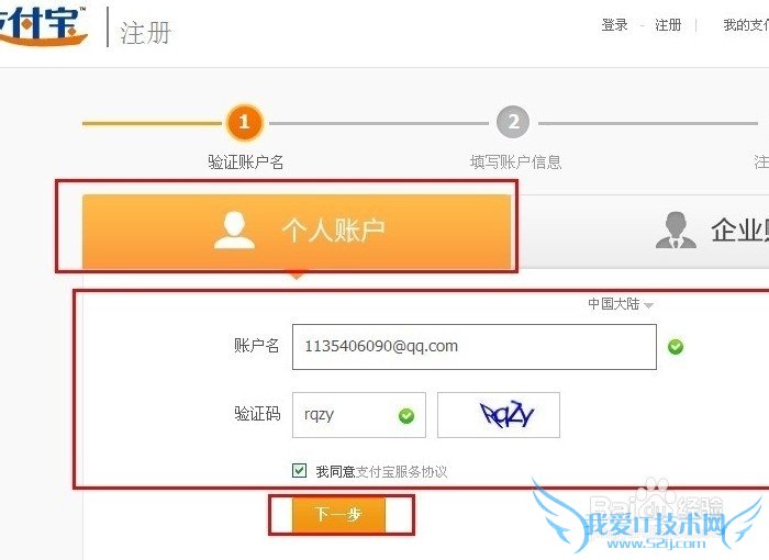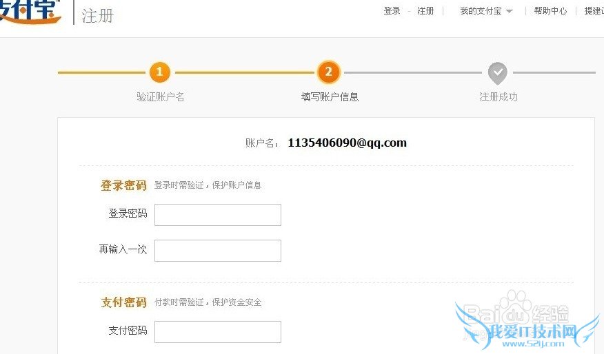 注:输入注册信息,要按照页面中的要求如实填写,否则会导致您的支付宝账户无法正常使用。公司类型的支付宝账户一定要有公司银行账户与之匹配。