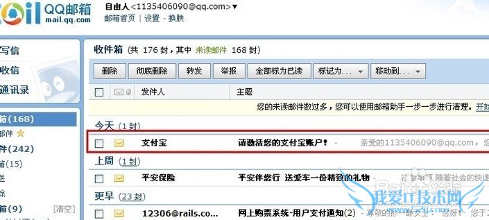 正确填写了注册信息后,点击"下一步",支付宝会自动发送一封激活邮件到您注册时填写的邮箱中。如下图: