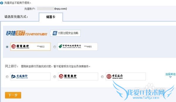 4、选择银行,并点击【下一步】,操作成功,对方账户即可收到充值金额。