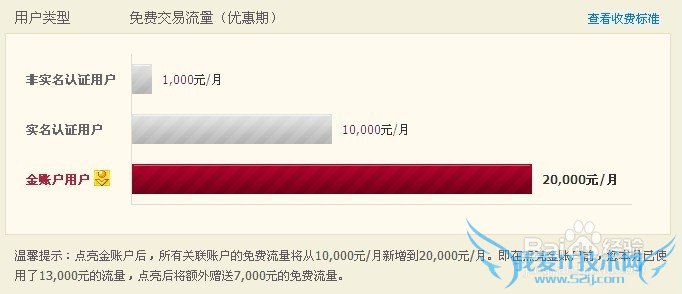 点亮金账户后,所有关联账户的免费流量将从10,000元/月新增到20,000元/月。即在点亮金账户前,您本月已使用了13,000元的流量,点亮后将额外赠送7,000元的免费流量。