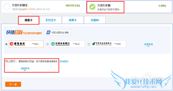 注:信用卡不能给支付宝账户充值。