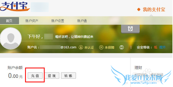 1、登录支付宝网站,点击【充值】