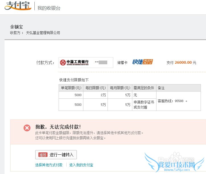看到如下的错误提示,着实令人不解。自从银行调低快捷支付限额后,很多人都遇到了这样的情况,为将存款转入支付宝,每天一笔一笔地转入,费尽周折。