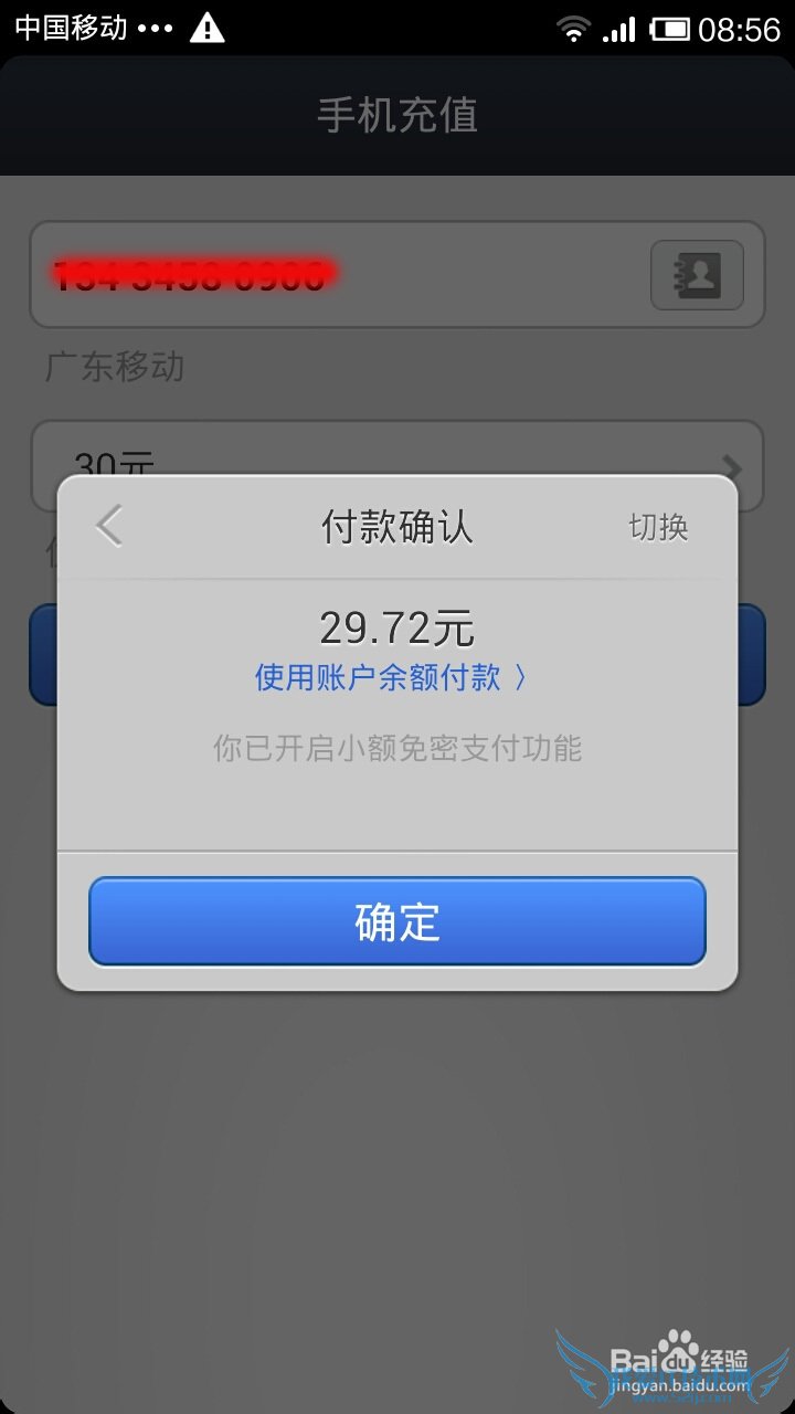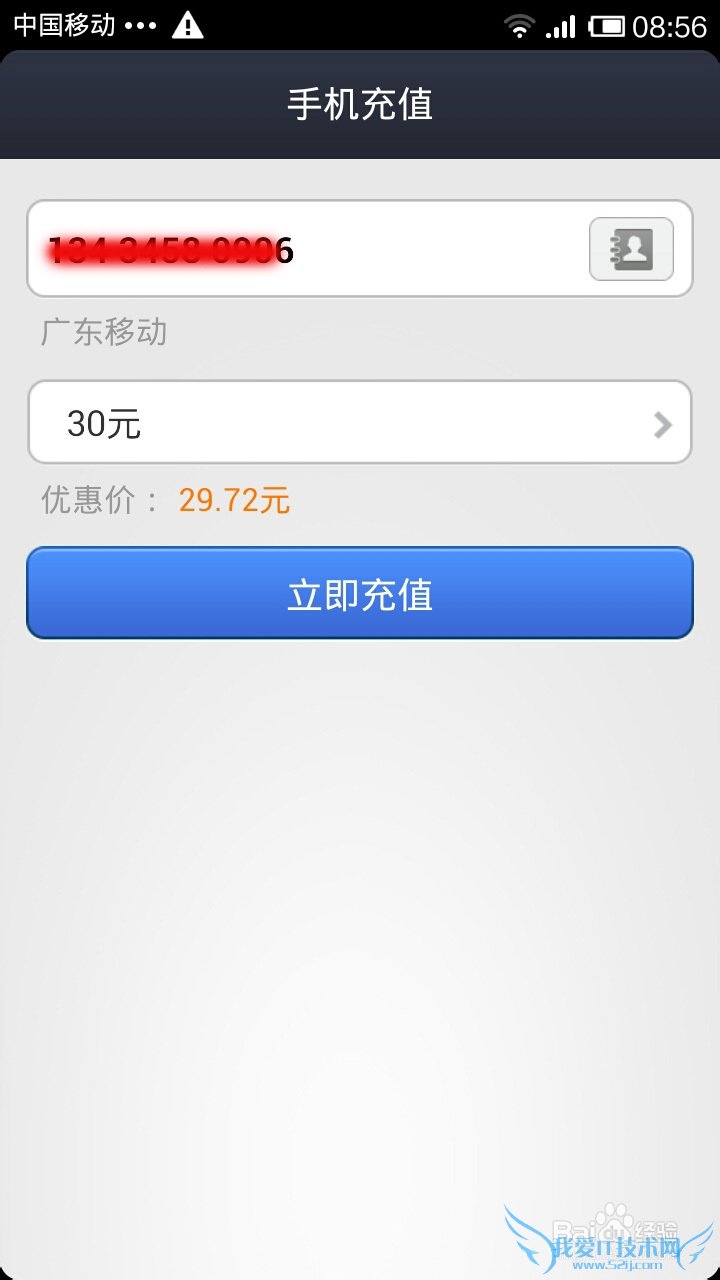 输入要充值的手机号码,选择充值的面额30元,点立即充值。如图示: