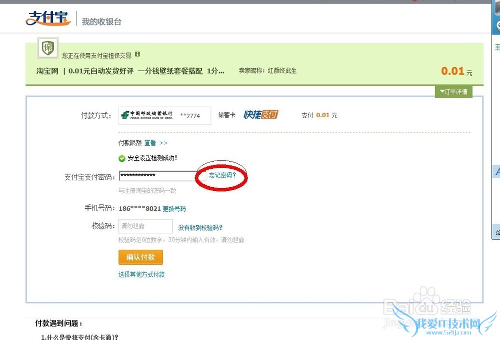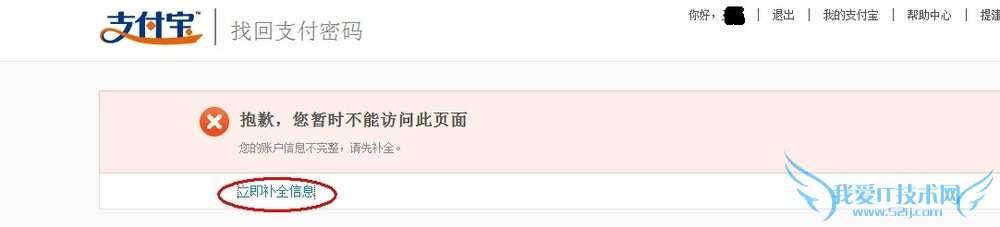 如果你有支付宝支付密码请直接输进去,如果没有或忘了,别着急。点击忘记密码(红圈那里)我的出现了这个画面