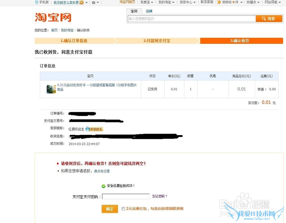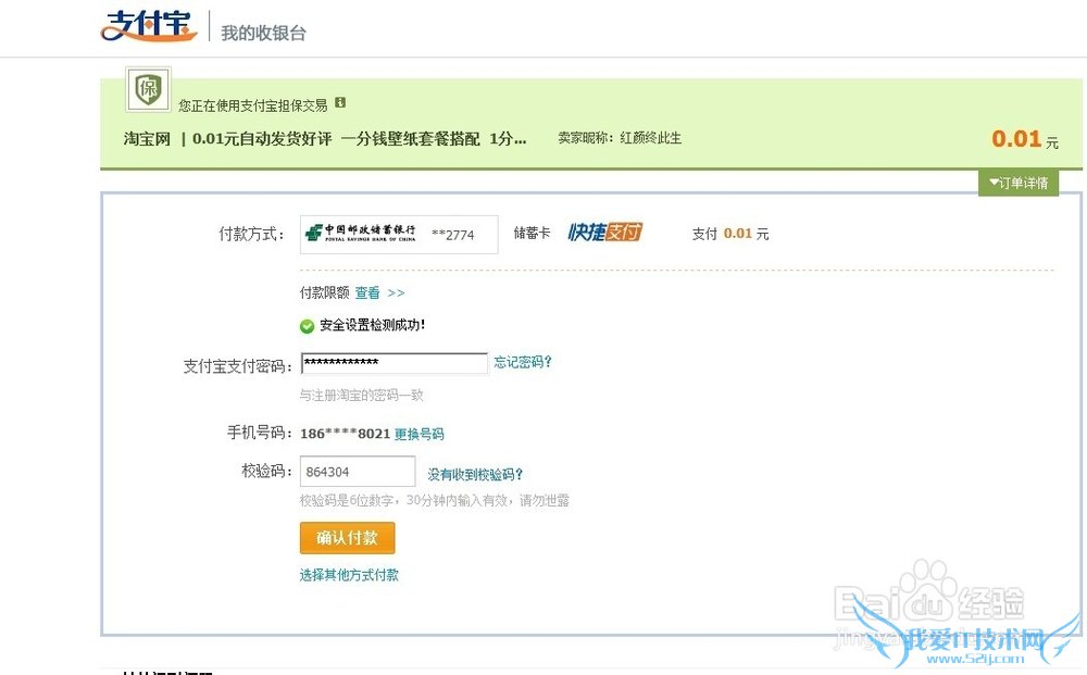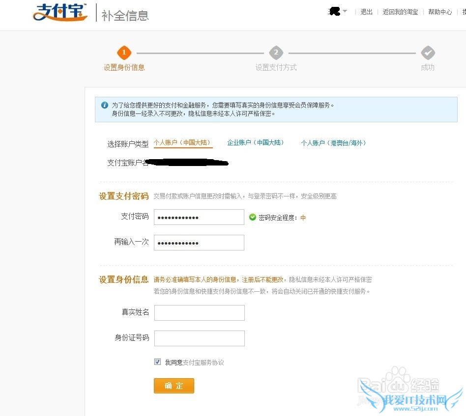 【确定】恭喜你 支付宝可以用了 请牢记支付密码和登陆密码是不一样的