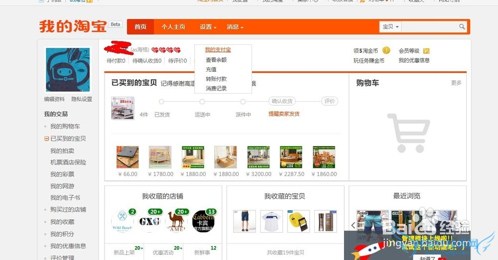 如何用手机支付宝查询积分兑换的快递详情[支付宝]